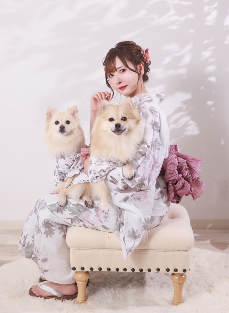 浴衣のモデルも務める、すみれおじさん(ペットブランド『ONEKOSAMA OINUSAMA』)