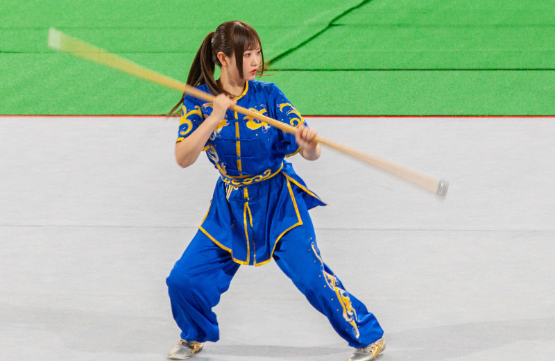 蕎麦打ちの麺棒のような太く長い棒を振る