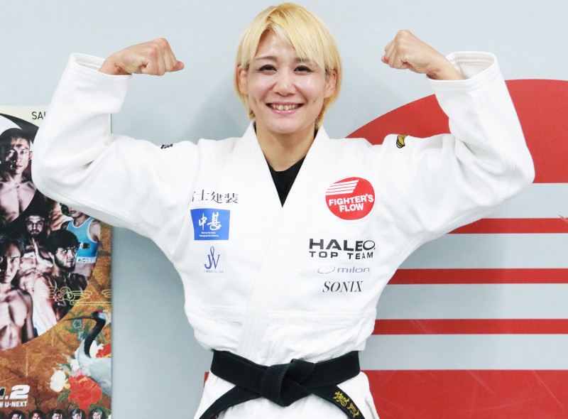 3年半ぶりの日本凱旋に向けて、渡辺が柔道着でマッスルポーズ!
