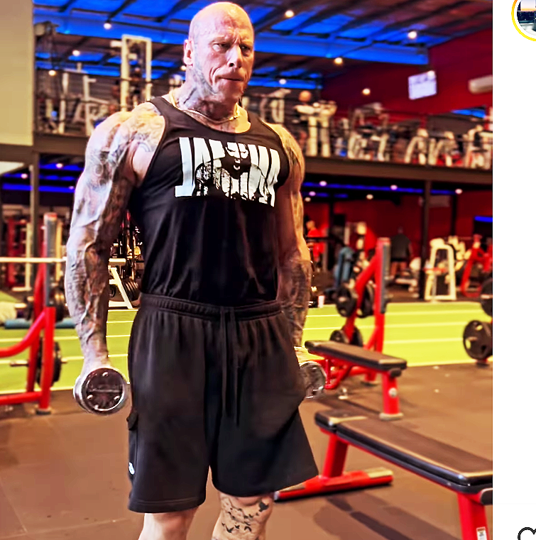 血管が浮き出る、ダンベルレイズをするフォード@martynfordofficial