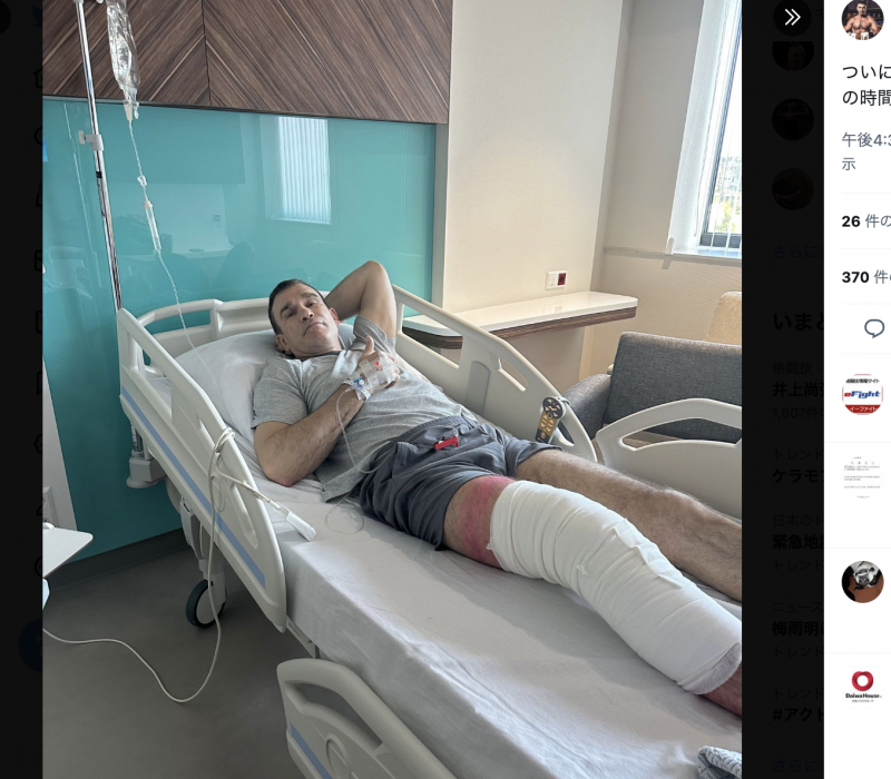 右ヒザの手術を報告したピーター・アーツ