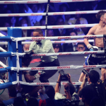 この左でダウンを奪う!(会場オーロラビジョンより)