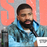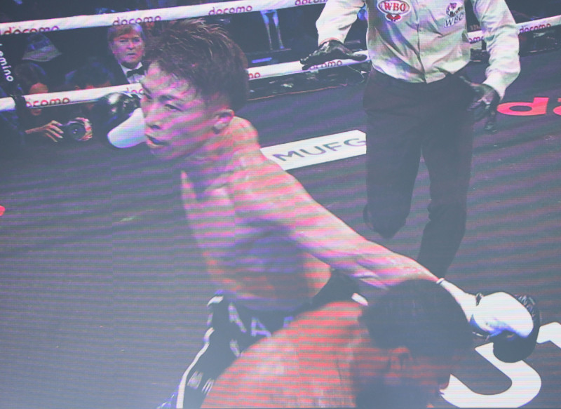 そこにとどめの左フックでフルトンは最初のダウン(会場のオーロラビジョンより)