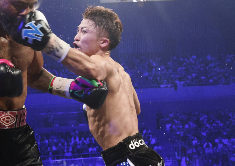 最初のダウンを奪った左フック!(オフィシャルフォト)
