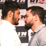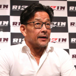 鈴木千裕(左)とパトリシオ(右)がフェイスオフで睨み合い