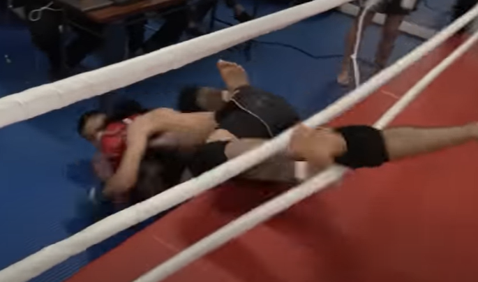 スパーリングではリング外へ飛び出すアクシデントも(『朝倉未来』YouTubeチャンネル)
