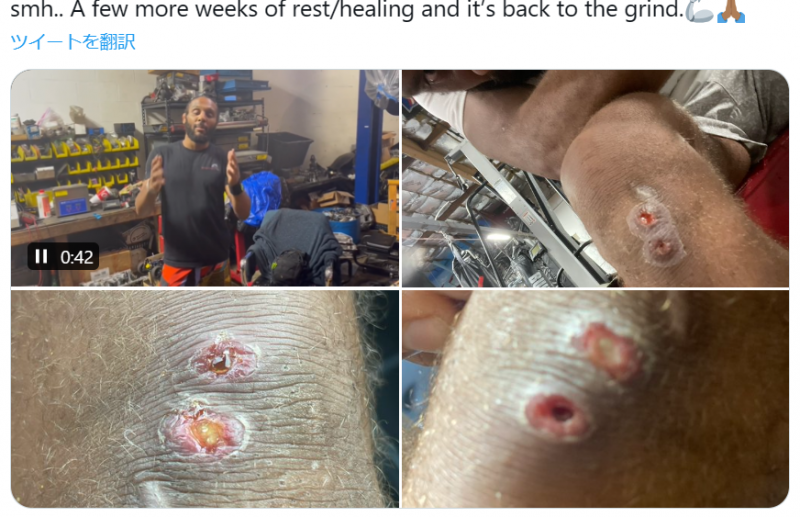AJの痛々しい右膝の傷口を公開した(@ajmckee101)
