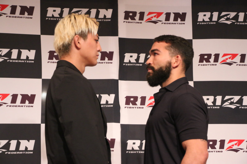 鈴木千裕(左)とパトリシオ(右)の試合は、順当な結果になるのだろうか(写真は26日の会見時)