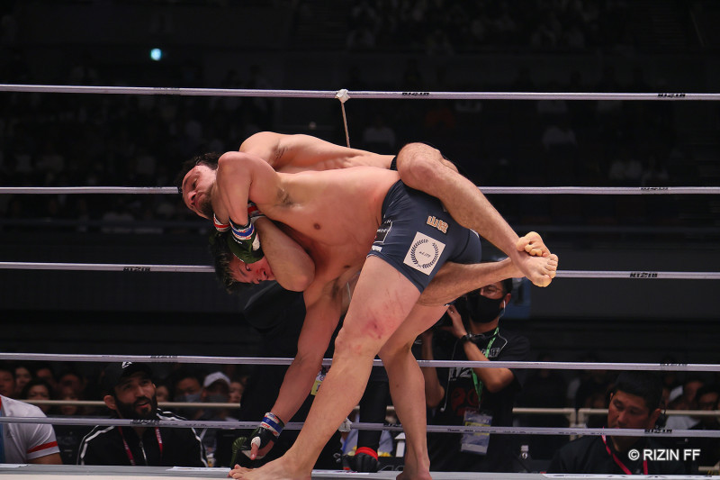 前回の堀江戦でバックチョークを極めにいくケラモフ©️RIZIN FF