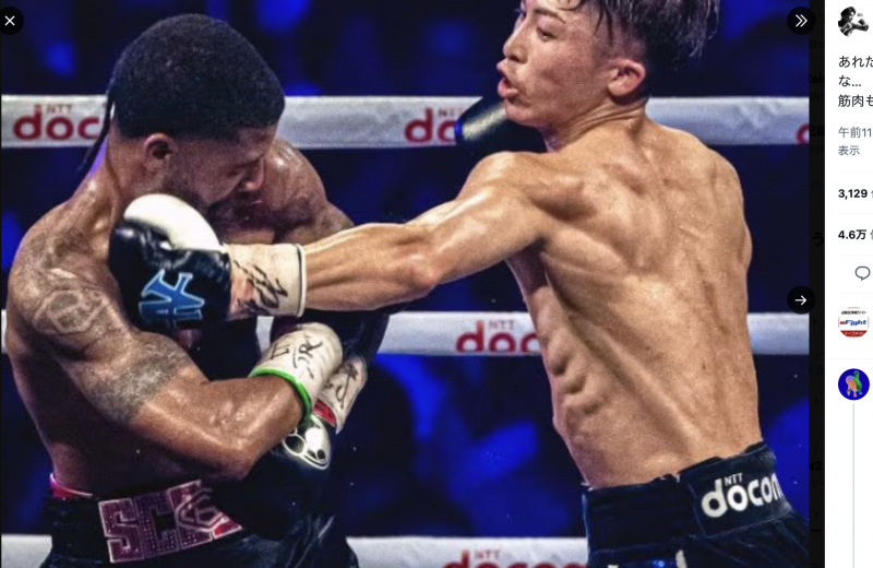井上が公開した左フックと筋肉写真!(井上尚弥twitterより)