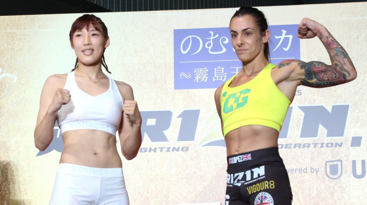 伊澤(左)はロペス(右)とタイトル防衛戦を行う