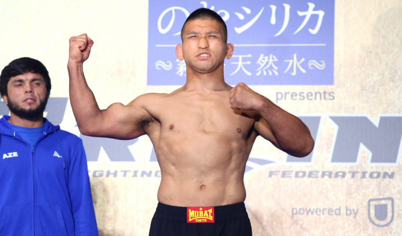 アキラは計量で勝利のドラミングでムサエフを威嚇した