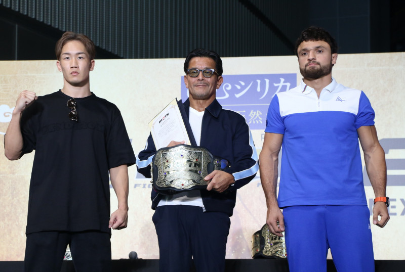 対戦する朝倉(左)とケラモフ(右)中央には榊原CEO