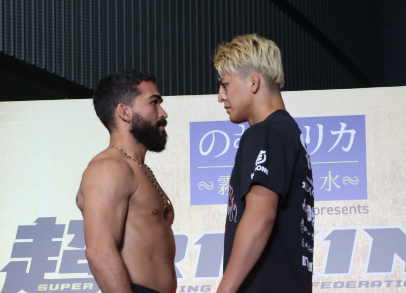 向かい合う両者、やや身長差がある印象
