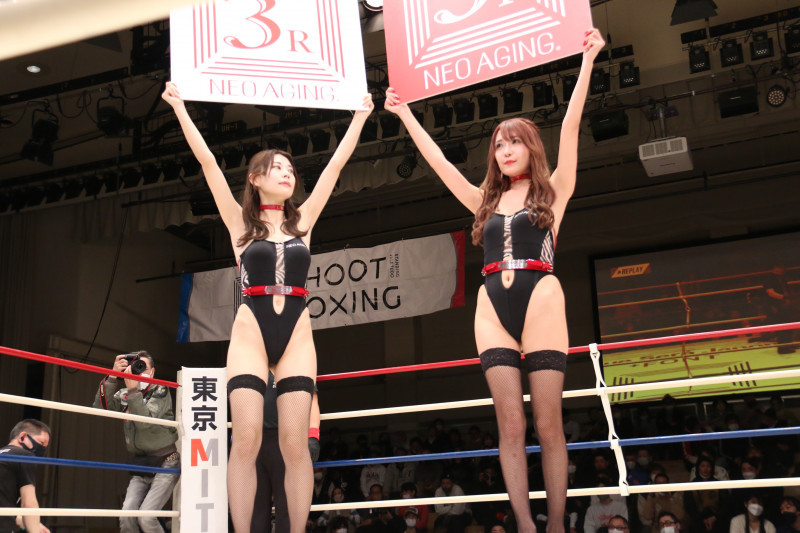 シュートボクシング ラウンドガール 蒼井じゅの(左)、明璃奈