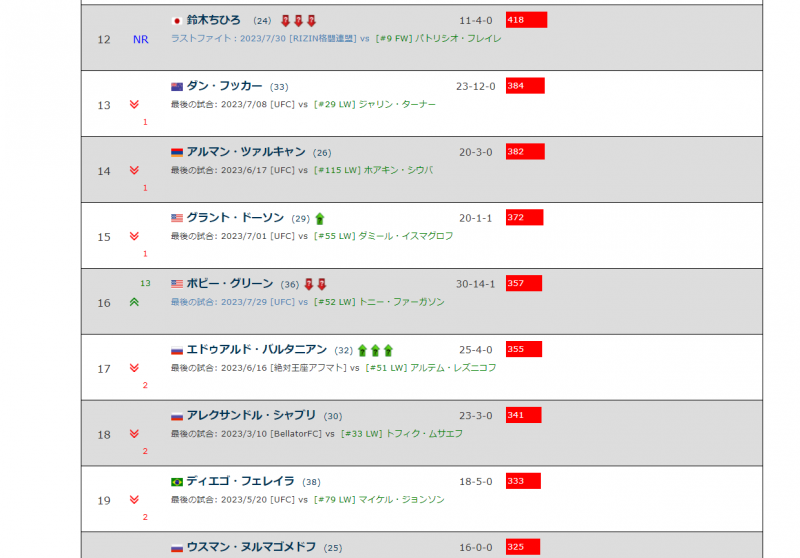 【日本語】鈴木の下にUFC強豪たちがズラリ fightmatrixより引用