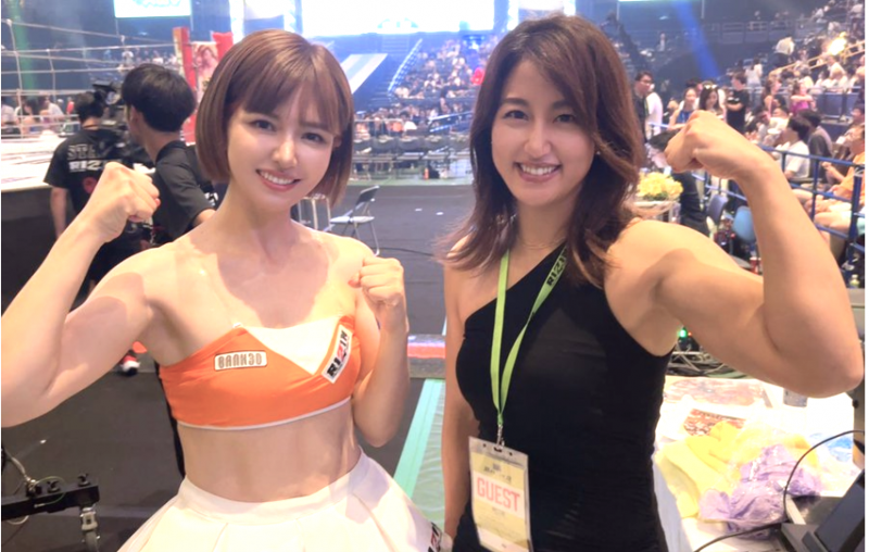 あきぴが投稿した杉山とのツーショット。二の腕の太さが際立つ杉山のマッスルボディ(あきぴインスタ)