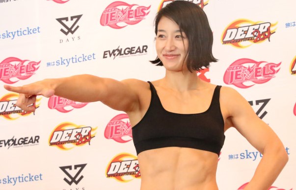 杉山しずかが、RIZINガールあきぴとのマッスルな腕の写真が話題(※写真は昨年3月のミッコ戦計量時)