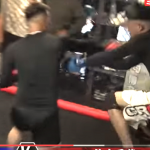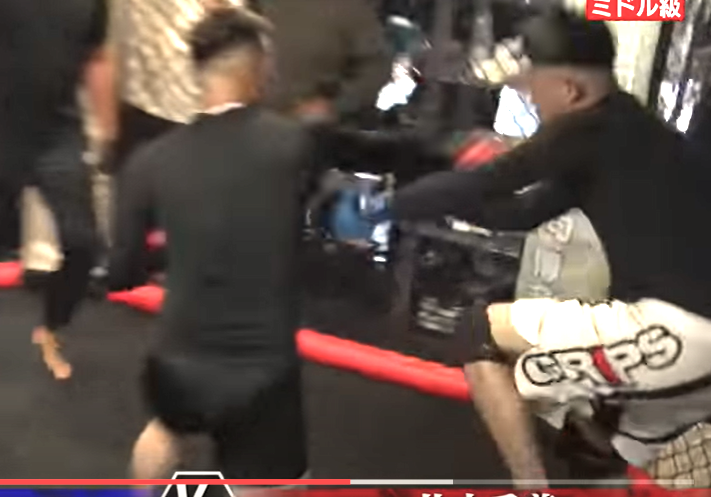 片山(左)は九州選抜戦で強烈な右でKOした(『朝倉未来』YouTubeチャンネル)