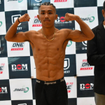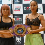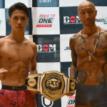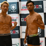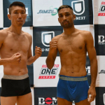 IPCC日本スーパーフェザー級王者決定戦で対戦するパルコ・レンジャージム(右)と亀本勇翔(左)