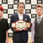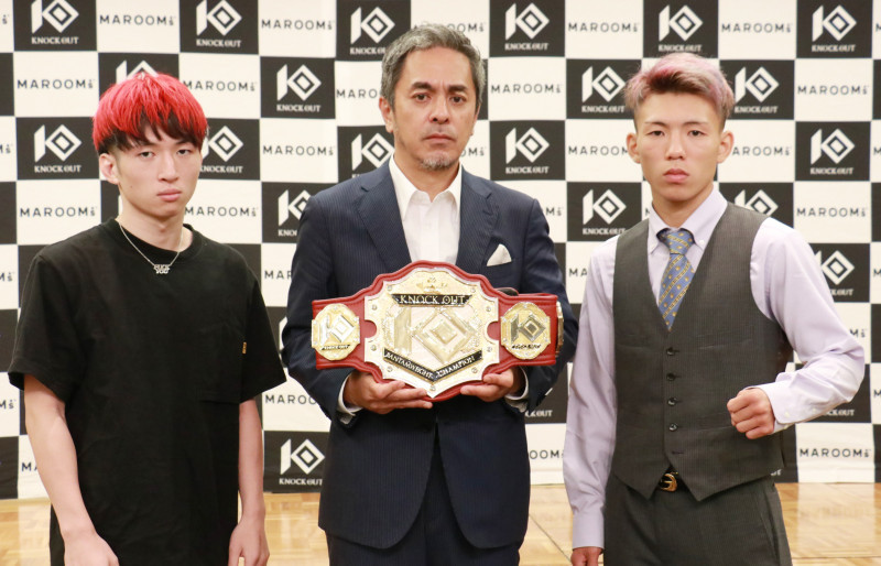 心直(左)と乙津陸(右)が王座決定戦。中央は宮田P