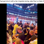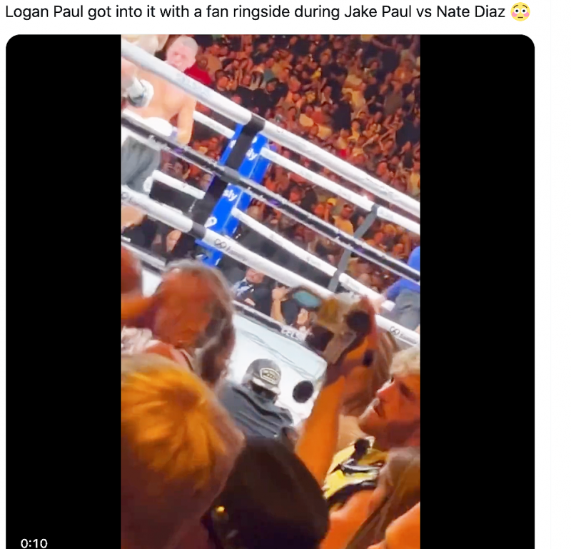 試合中、リングサイドで兄ローガン・ポールが観客と口論@HappyPunchPromoより