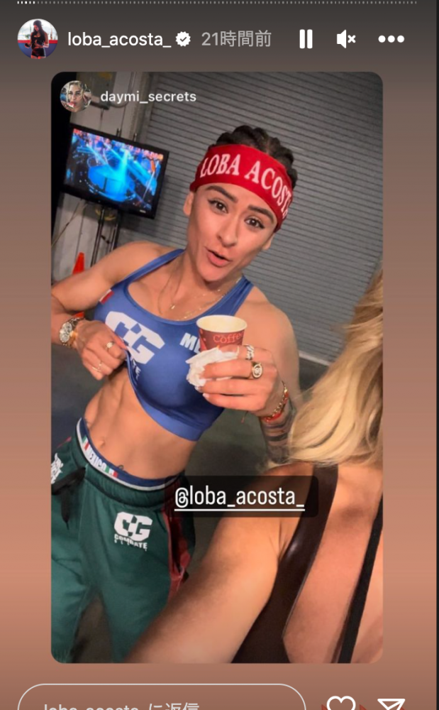 試合後、鍛えた美腹筋を披露@loba_acosta_より