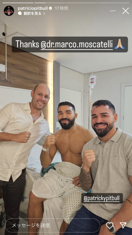 術後3時間、元気にガッツポーズのパトリシオ(中央)
