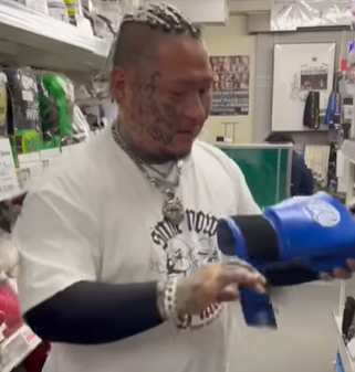 バンデージ巻いたら、これも入らないと呟く久保(『所沢のタイソン』YouTubeチャンネル)