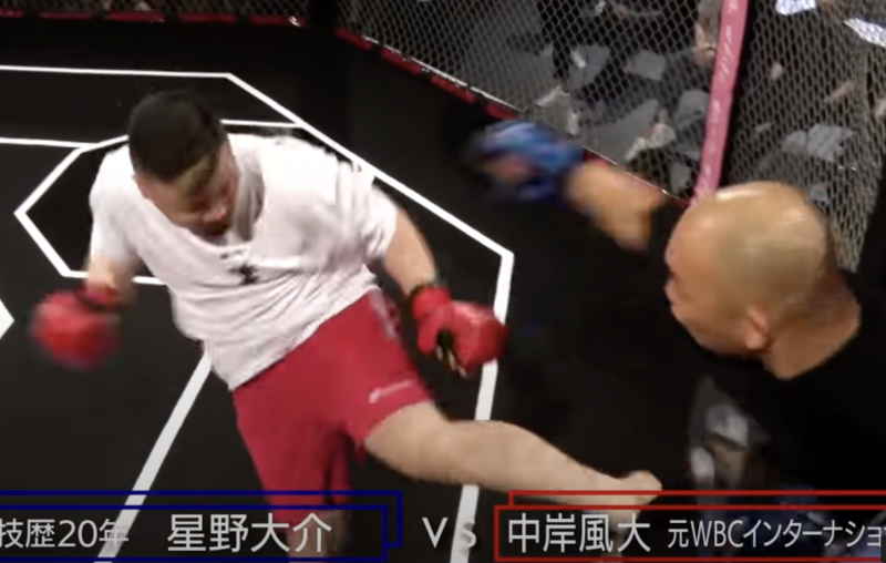 中岸の右ローがヒット!朝倉未来 公式YouTubeより)