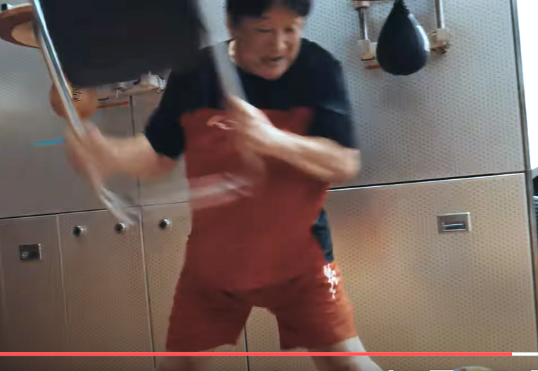 前田日明の椅子攻撃で奥野がダウン(ごぼう奥野『SUBUチャンネル』)