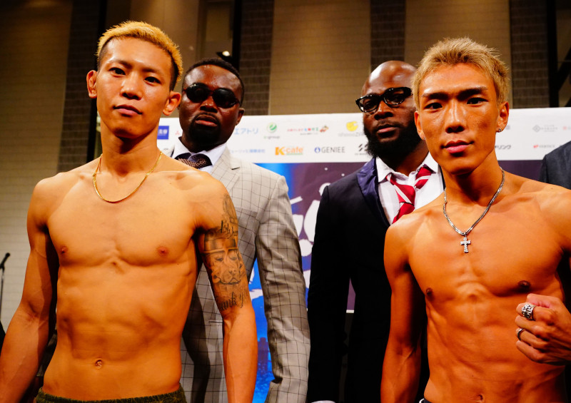 中川麦茶(左)と亀田京之介(右)はボディガードに見守られながら計量パス©︎3150FIGHT