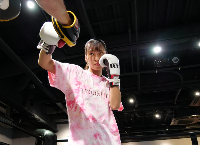 ミット打ちを披露した宮﨑(C)RISE