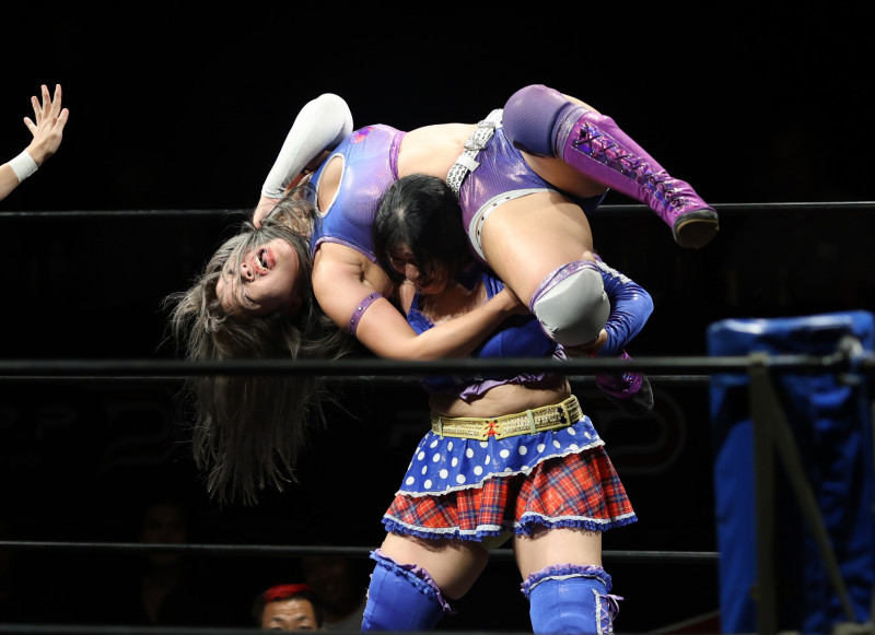 尾崎もアルゼンチンバックブリーカーでちゃんよたを持ち上げる