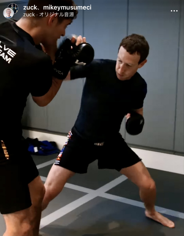 ONE王者ムスメシ(左)とスパーリングするザッカーバーグ @zuck