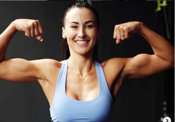 トレーニングウェア姿でマッスルポーズを決める、世界的人気のフィットネス美女、リサ・ランスフォード@lisafiittより
