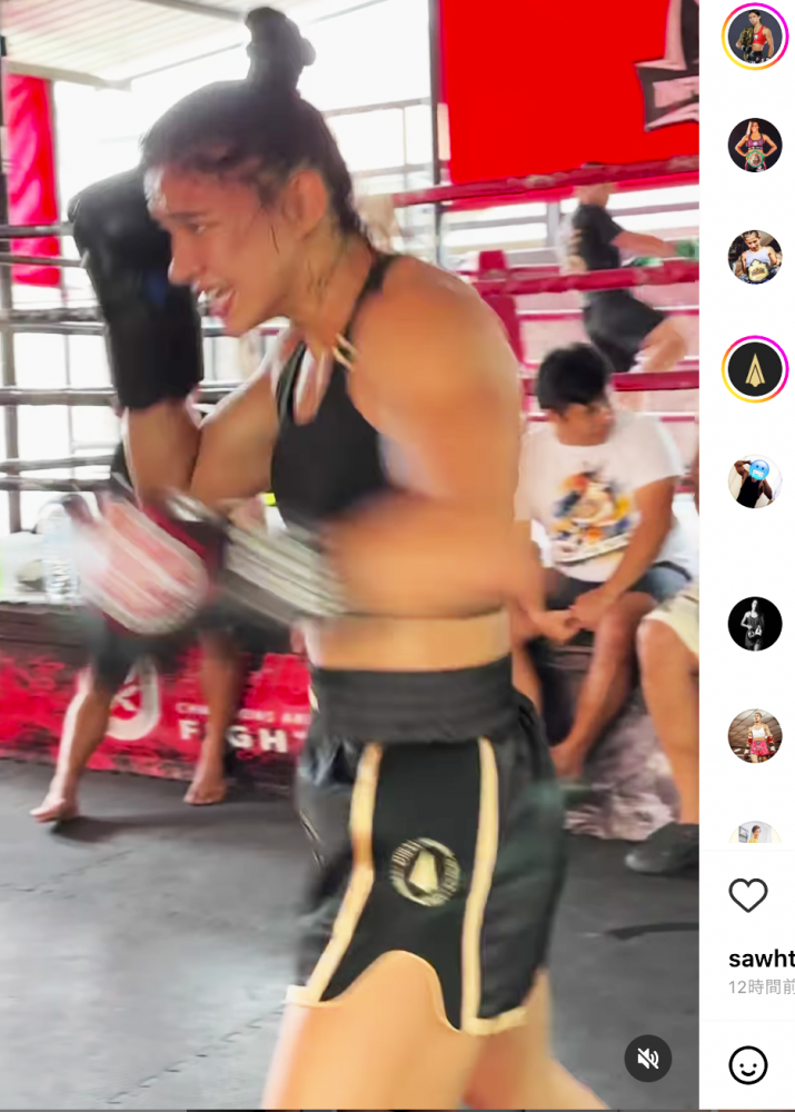 破壊力あるパンチをミットに叩き込む@allycia_phuketfightclubより