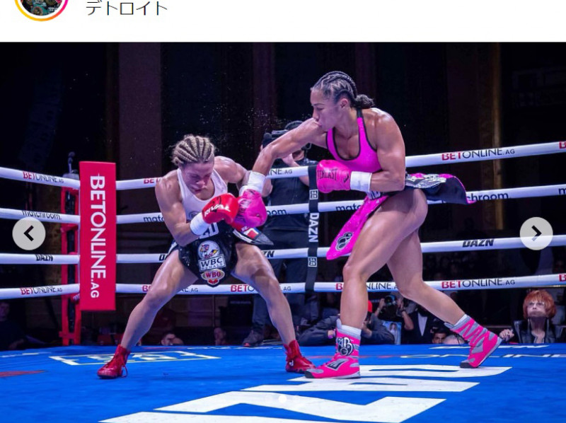マッスルボディから強烈なパンチを繰り出すアリシア(@alyciabaumgardnerより)