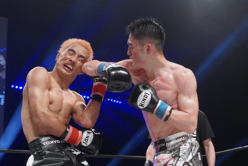 前回の対戦では大﨑(右)がヒジ打ちで攻めて、加藤(左)を下した