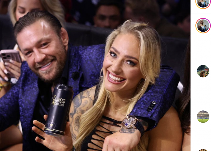 “お騒がせ”ボクシング女王のブリッジス(右)とマクレガーがリングサイドで観戦(ブリッジスのインスタより)