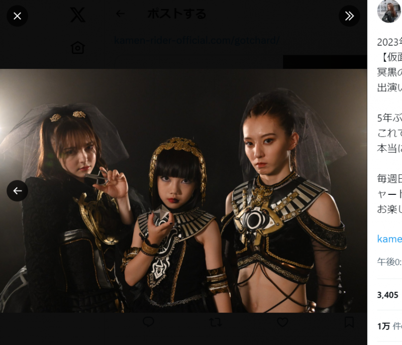 仮面ライダーの悪役三姉妹の一人に抜擢された宮原(右)@/miyahara_kanon