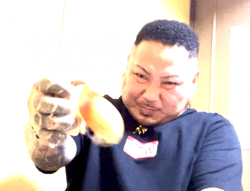 片手でりんごを潰す(『所沢のタイソン』YouTubeチャンネル)