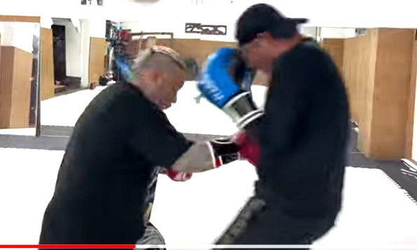 仲村は、ボディをもらってうめき声をあげた(『所沢のタイソン』YouTubeチャンネル)
