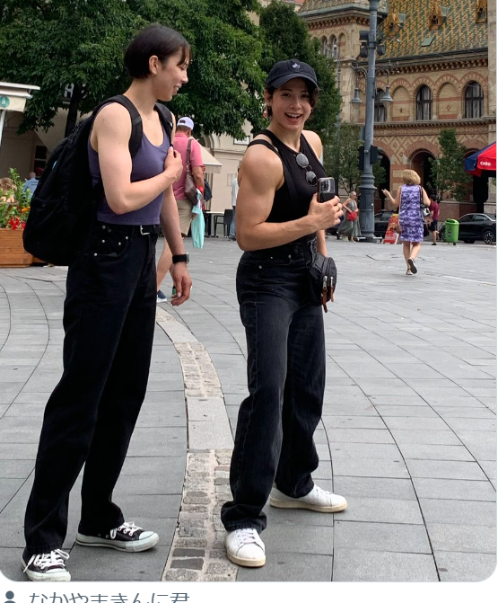 出口クリスタ(右)は、なかやまきんに君のマッスルポーズ!隣の妹のケリーもマッスルな二の腕だ(@10CMD29)