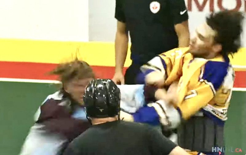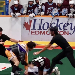 カナダのラクロスで乱闘!パンチを受けヒザが落ちる