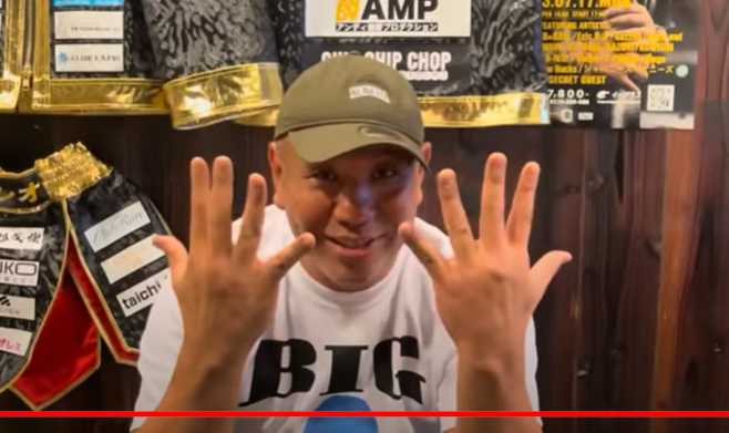 表と裏を見せて指があることをアピール(『サップ西成』YouTubeチャンネル)