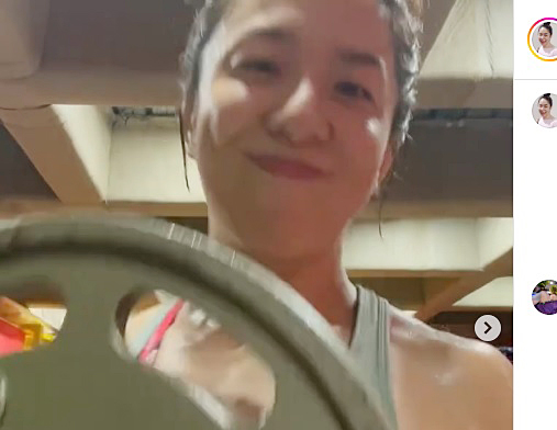 20kgのプレートで筋トレする浜口京子@hamaguchi_kyoko_wrestlingより