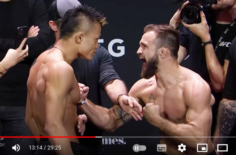 フェイスオフでバチバチに睨み合う両者(UFC公式YouTubeより)