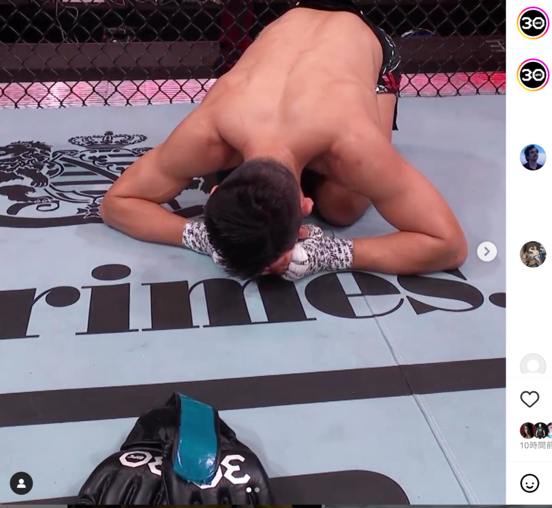 グローブをマットに置くチャンソン@UFC