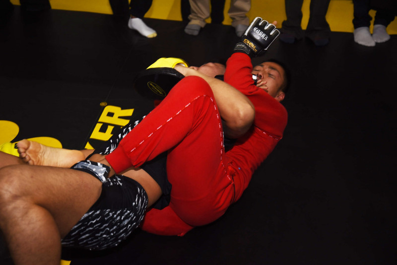 芦澤がパウンド攻撃からバックチョークを仕掛ける